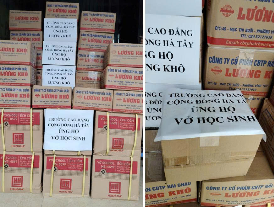 Thông qua Quỹ Xã hội của Nhà trường, tập thể cán bộ, viên chức và người lao động đã đóng góp 1.000 cuốn vở viết, 20 thùng lương khô, với tổng trị giá 10.250.000 đồng. Các phần quà được tập kết tại Trường Trung cấp Kinh tế Kỹ thuật Bắc Thăng Long, chuyển đến hai tỉnh chịu ảnh hưởng nặng nề là Thái Nguyên và Bắc Ninh.
