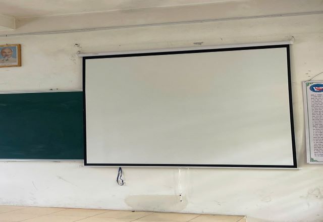 Trong đợt mua sắm lần này, Nhà trường đã bổ sung thêm bàn giáo viên, màn chiếu, máy chiếu và bảng viết phấn cho nhiều phòng học. Những trang thiết bị tuy quen thuộc nhưng đóng vai trò quan trọng, gắn liền trực tiếp với hoạt động dạy và học hằng ngày của thầy, cô và các em học sinh, sinh viên. Với những chiếc bàn giáo viên được thay mới, giảng viên sẽ có không gian làm việc thuận lợi, tạo cảm hứng trong giảng dạy. Các màn chiếu được lắp đặt đồng bộ, thay thế cho những màn chiếu cũ, rách, sẽ giúp bài giảng trở nên trực quan, sinh động hơn, hỗ trợ tối đa việc ứng dụng công nghệ thông tin trong giảng dạy. Đồng thời, với bảng viết phấn mới sẽ tạo điều kiện để quá trình truyền đạt kiến thức diễn ra rõ ràng, thuận lợi, góp phần duy trì không khí học tập tích cực trong mỗi tiết học, khắc phục tình trạng một số bảng cũ bị bập bùng, mờ ảnh hưởng đến việc tiếp thu kiến thức của học sinh, sinh viên.
