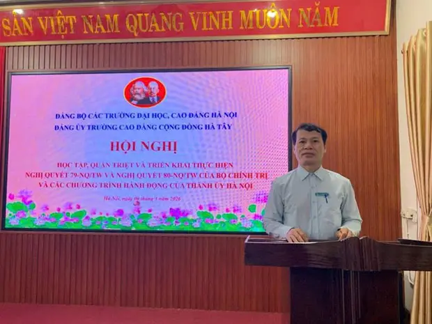 Thực hiện chỉ đạo của cấp trên về việc tổ chức học tập, quán triệt và triển khai thực hiện các nghị quyết của Đảng, ngày 06 tháng 3 năm 2026, tại Hội trường Trường Cao đẳng Cộng đồng Hà Tây, Đảng ủy Nhà trường đã tổ chức Hội nghị học tập, quán triệt Nghị quyết số 79-NQ/TW ngày 06/1/2026 của Bộ Chính trị về phát triển kinh tế nhà nước. về phát triển kinh tế Nhà nước; Nghị quyết số 80-NQ/TW ngày 07/01/2026 của Bộ Chính trị về phát triển văn hóa Việt Nam; Các chương trình hành động của Thành ủy Hà Nội và sinh hoạt chính trị về vai trò, ý nghĩa, những điểm mới trong các Văn kiện Đại hội đại biểu toàn quốc lần thứ XIV của Đảng; 10 chuyên đề của Bộ Chính trị và các quan điểm, bài viết của đồng chí Tổng Bí thư Tô Lâm.