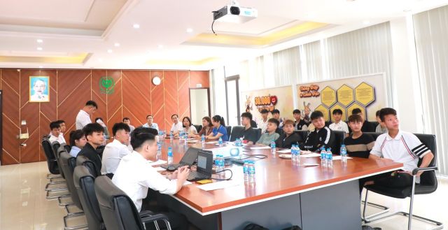 Sau khi được đại diện ban lãnh đạo công ty chia sẻ thông tin về tập đoàn, công ty tại phòng hội thảo, học sinh lớp TC3CNTY16 khoa Kỹ thuật Nông nghiệp cùng các thầy cô giáo trong đoàn tham quan tiếp tục được ông Nguyễn Văn Mạnh – Giám đốc trung tâm chia sẻ chủ đề “An toàn sinh học trong chăn nuôi”. Đây là một khâu vô cùng quan trọng đối với trang trại chăn nuôi, có tính quyết định trong việc bảo vệ đàn vật nuôi trước sự xâm nhập và lây lan mầm bệnh từ môi trường bên ngoài hoặc lây lam giữa các khu vực trong trại. Từ đó, giúp đàn vật nuôi khỏe mạnh, phát triển ổn định, giảm thiểu các thiệt hại về kinh tế xảy ra trong chăn nuôi. Cũng nhờ có các biện pháp an toàn sinh học vật nuôi khỏe mạnh, các sản phẩm từ trại ít tồn dư kháng sinh góp phần đảm bảo an toàn thực phẩm cho cộng đồng, qua đó bảo vệ sức khỏe người tiêu dùng. Không những thế, trang trại thực hiện chăn nuôi an toàn sinh học sẽ kiểm soát được chất thải và nguồn nước thải ra môi trường, điều này đã góp phần tích cực trong việc xây dựng hình ảnh cho ngành chăn nuôi hiện đại và bền vững.
