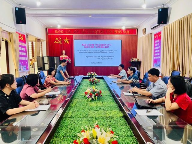 Tại buổi làm việc, Th.S Nguyễn Thị Khuyên đã trình bày báo cáo tóm tắt nội dung, phương pháp và kết quả nghiên cứu của đề tài. Các phản biện đã có những nhận xét cụ thể, đánh giá cao về cách tổ chức thực nghiệm, số liệu thu thập đầy đủ, phương pháp xử lý phù hợp và nội dung báo cáo rõ ràng, có cơ sở khoa học. Tuy nhiên, hội đồng cũng đưa ra một số góp ý để nhóm nghiên cứu hoàn thiện hơn về mặt trình bày, bổ sung cơ sở lý luận và mở rộng phạm vi ứng dụng.