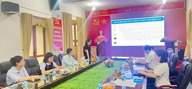 Tại buổi sinh hoạt, các đảng viên đã tích cực tham gia trao đổi, thảo luận sôi nổi với tinh thần thẳng thắn, xây dựng và trách nhiệm cao. Nhiều ý kiến thực tiễn đã được chia sẻ từ góc nhìn của giảng viên trực tiếp giảng dạy, quản lý lớp và tham gia công tác tuyển sinh, qua đó làm rõ những thuận lợi, khó khăn trong thực tiễn triển khai. Các đảng viên đã tập trung phân tích nguyên nhân dẫn đến những hạn chế trong công tác tuyển sinh thời gian qua, như: sự cạnh tranh giữa các cơ sở giáo dục nghề nghiệp ngày càng lớn; công tác truyền thông chưa thực sự đồng bộ; hoạt động tư vấn, hướng nghiệp tại các trường phổ thông còn chưa sâu rộng; mức độ nhận diện thương hiệu của một số ngành đào tạo chưa cao.