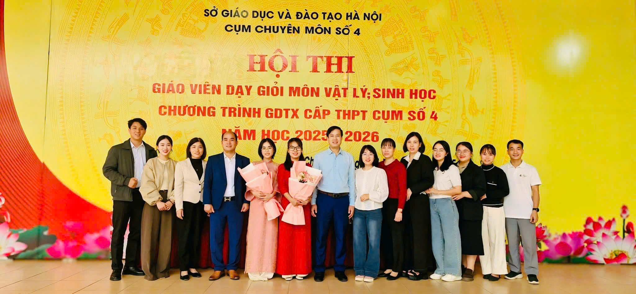Thực hiện Kế hoạch Tổ chức Hội thi giáo viên dạy giỏi môn Vật lý, Sinh học chương trình GDTX cấp THPT Cụm 4 năm học 2025 – 2026, Trường Cao đẳng Cộng đồng Hà Tây đã cử hai giáo viên tiêu biểu tham gia Hội thi Giáo viên dạy giỏi Cụm chuyên môn số 4, gồm: Cô Dương Thị Lan Anh – giáo viên Vật lý và Cô Chu Thị Bích Thủy – giáo viên Sinh học. Hội thi diễn ra sôi nổi vào ngày 11/12/2025 tại Trung tâm GDNN – GDTX Chương Mỹ.
