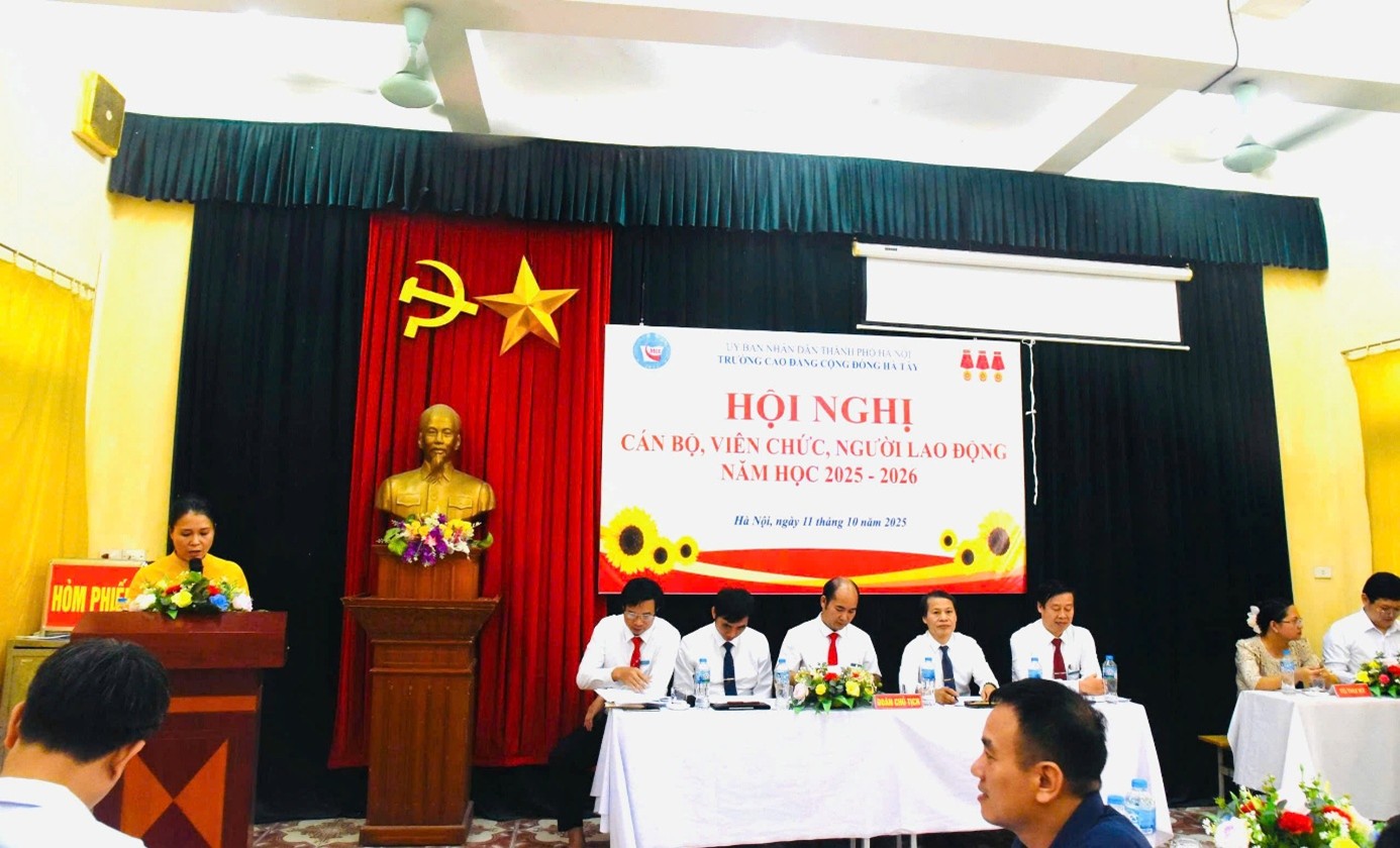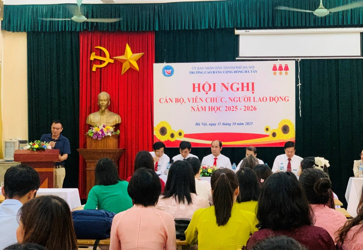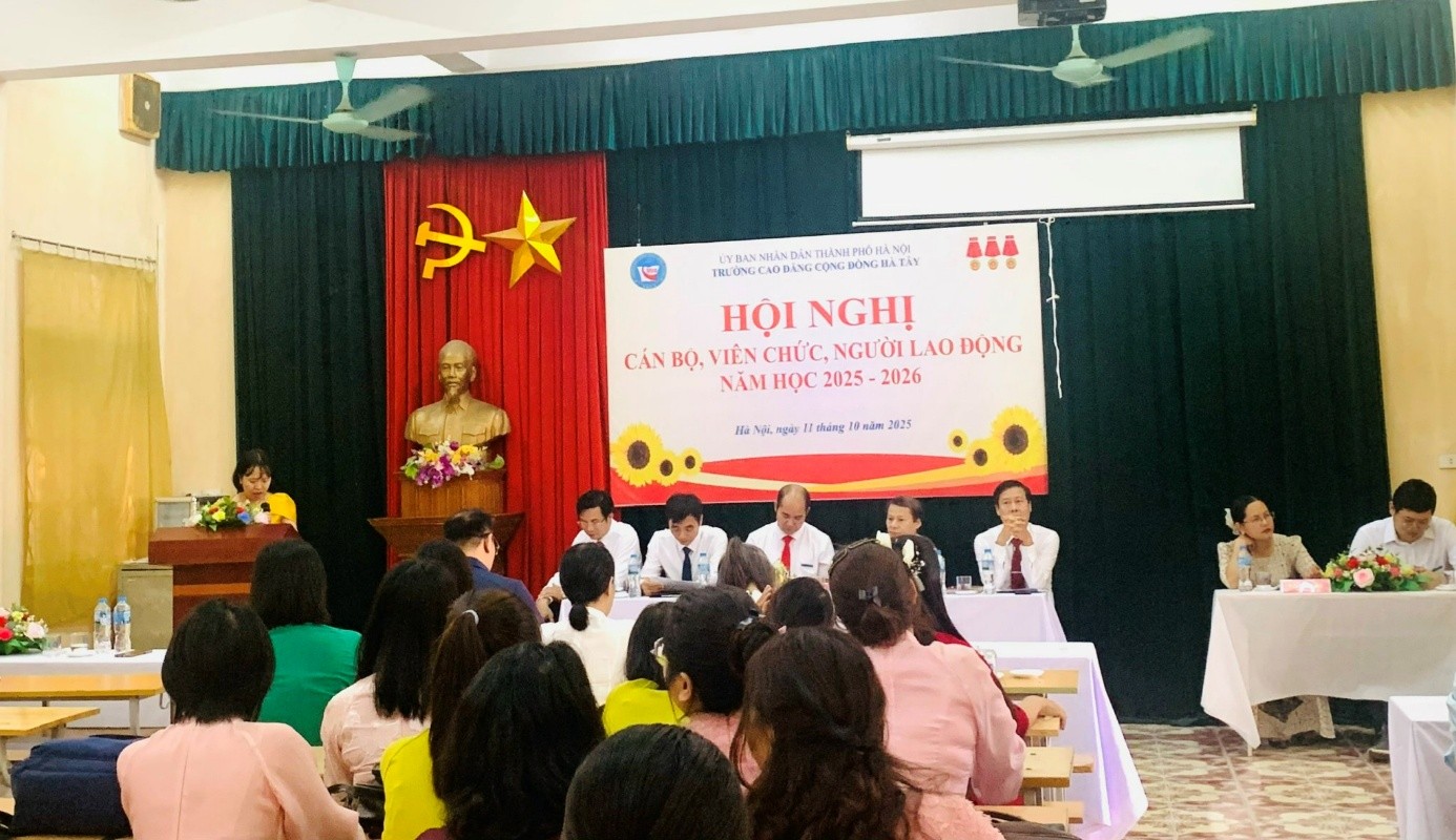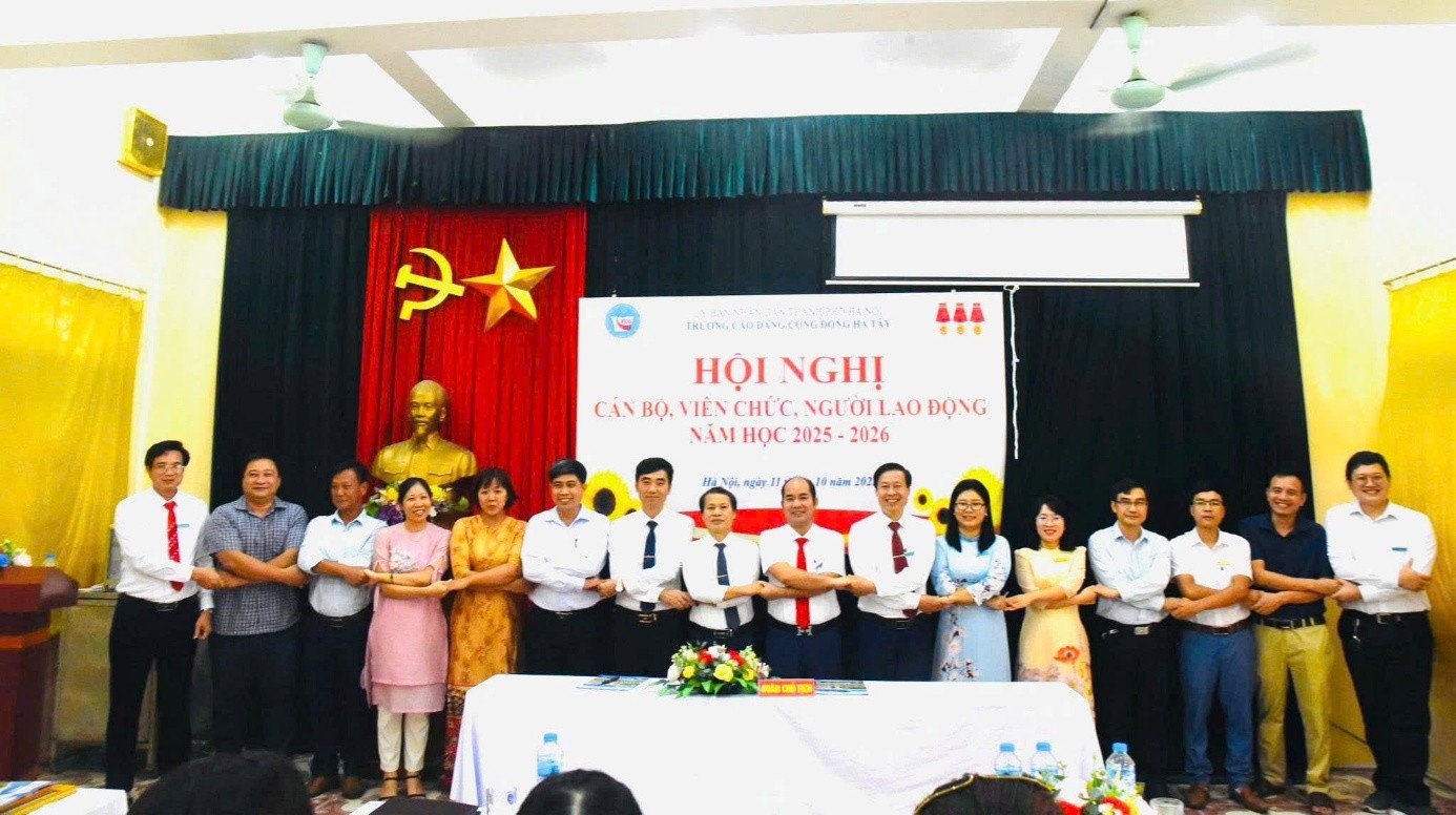Thực hiện Kế hoạch số 96/KH-CĐCĐHT ngày 13/8/2025 của Trường Cao đẳng Cộng đồng Hà Tây. Ngày 11/10/2025, Ban giám hiệu và Công đoàn Trường Cao đẳng Cộng đồng Hà Tây đã long trọng tổ chức Hội nghị cán bộ, viên chức, người lao động (CBVCNLĐ) năm học 2025-2026.