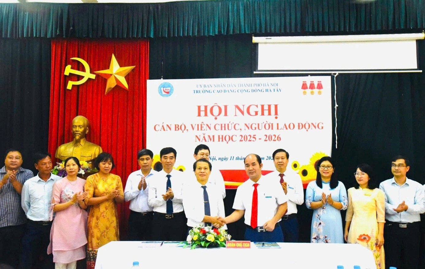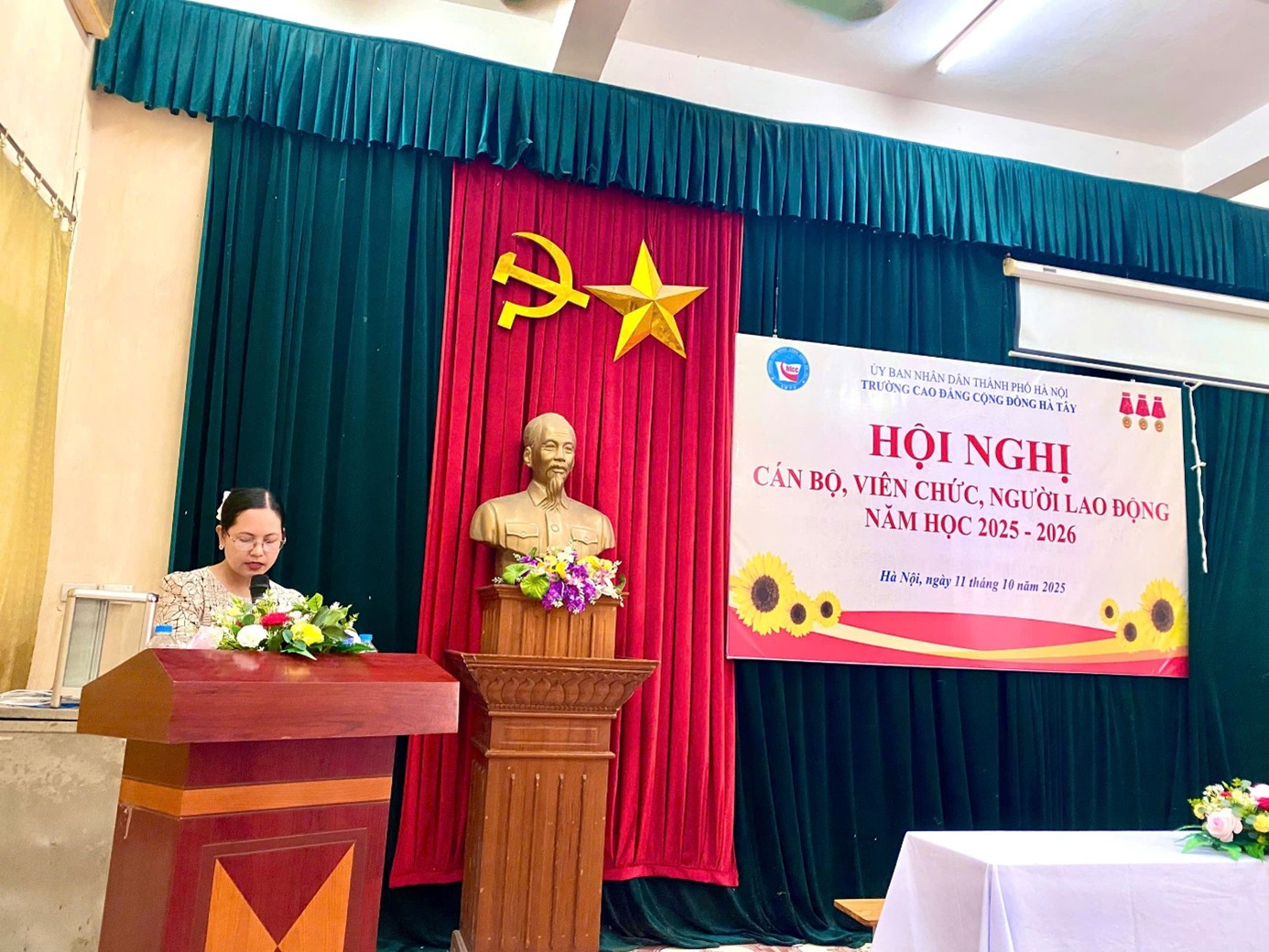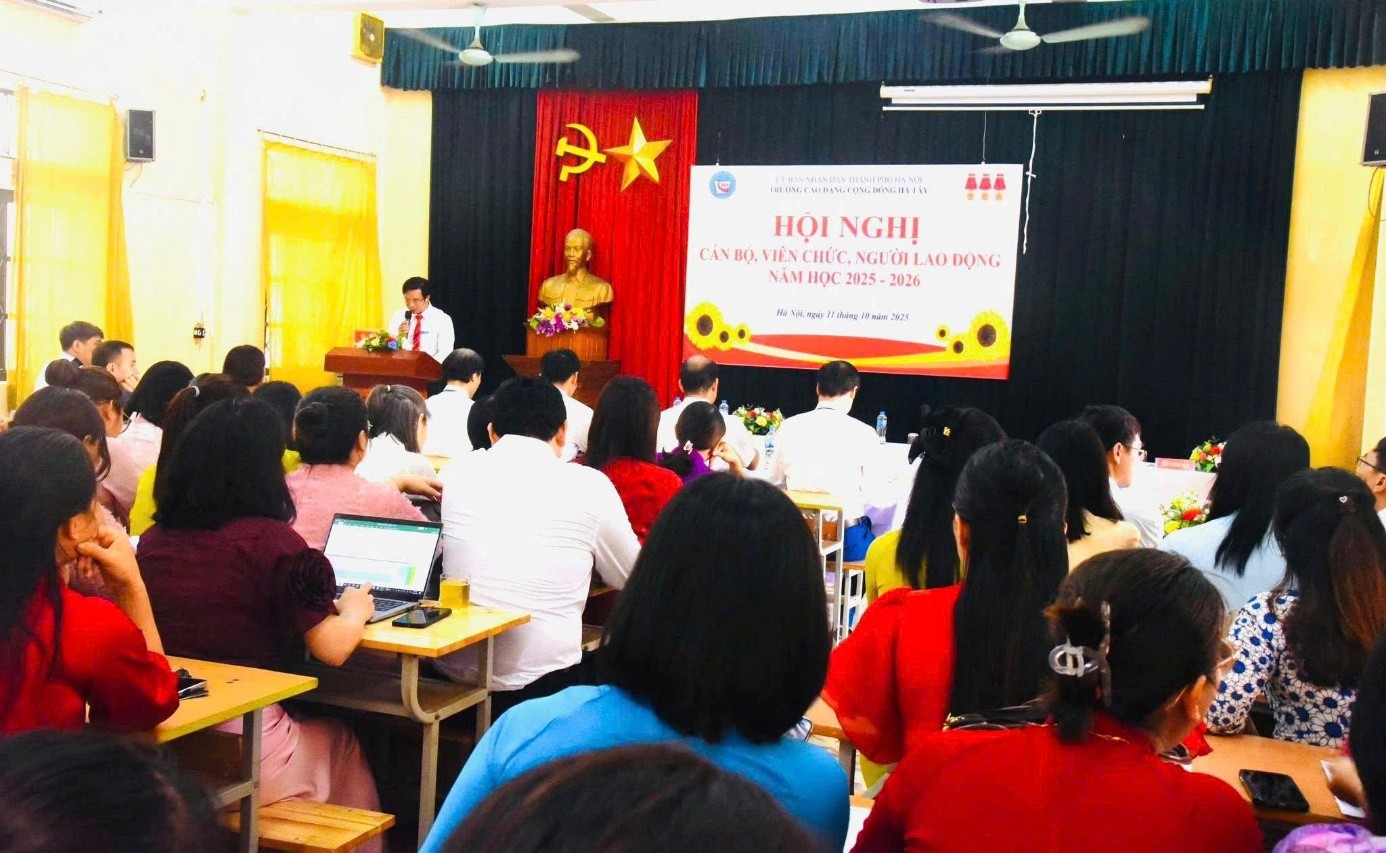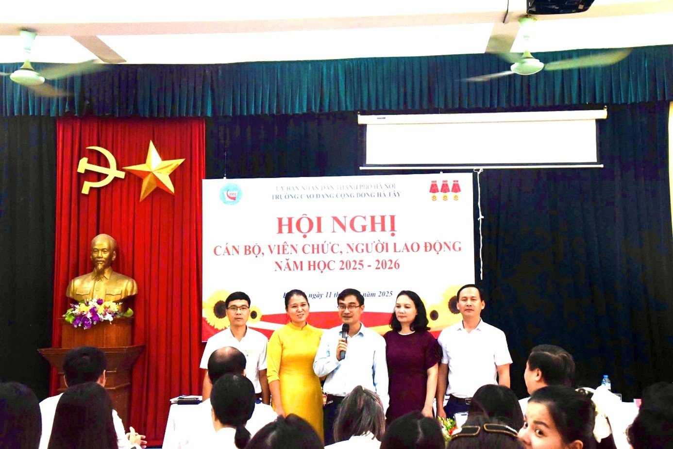 Thực hiện Kế hoạch số 96/KH-CĐCĐHT ngày 13/8/2025 của Trường Cao đẳng Cộng đồng Hà Tây. Ngày 11/10/2025, Ban giám hiệu và Công đoàn Trường Cao đẳng Cộng đồng Hà Tây đã long trọng tổ chức Hội nghị cán bộ, viên chức, người lao động (CBVCNLĐ) năm học 2025-2026.