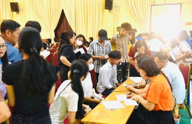 Cán bộ Nhà trường hướng dẫn học sinh, sinh viên cùng quý phụ huynh hoàn thiện các thủ tục nhập học đợt 2 năm 2025