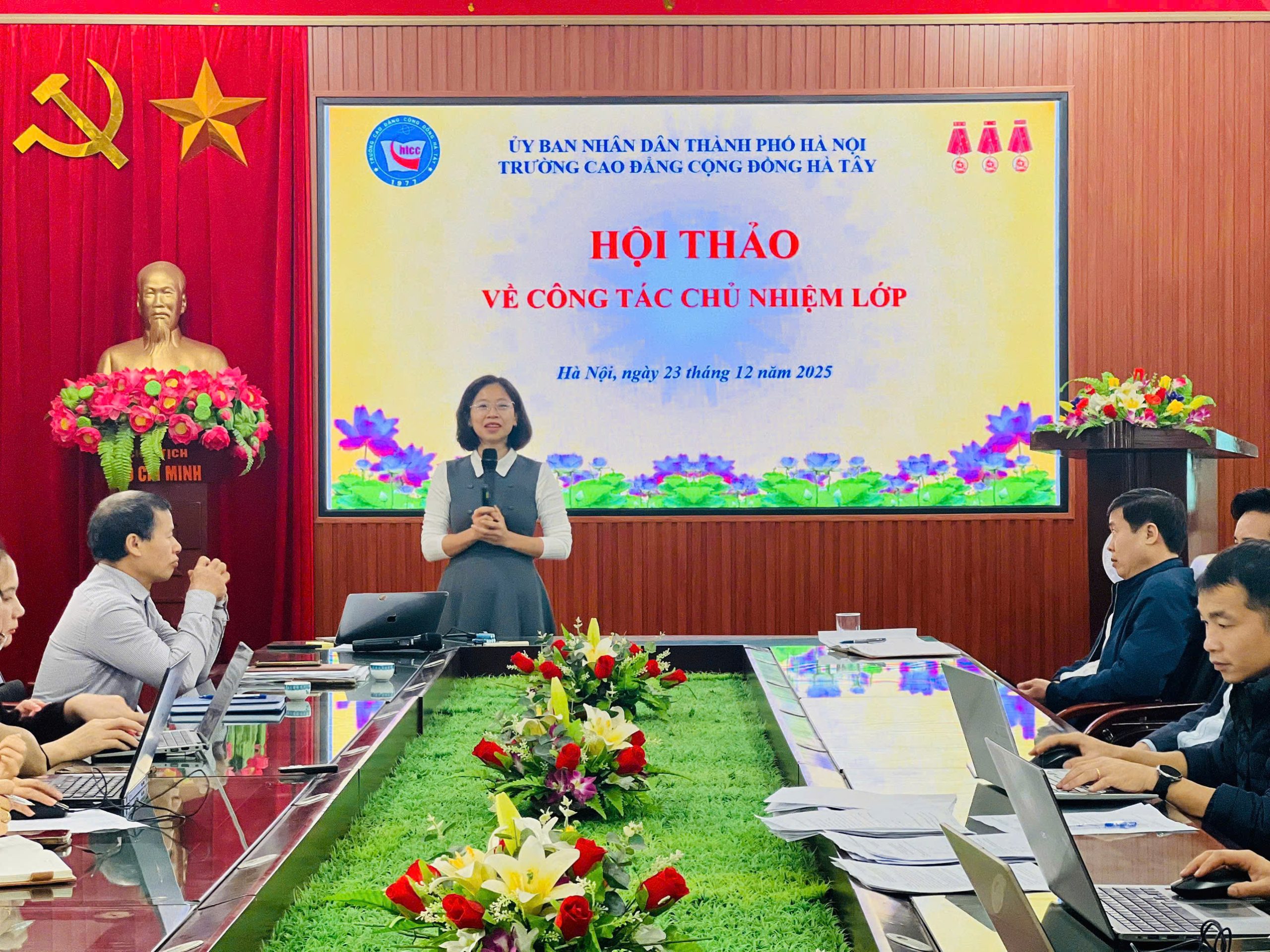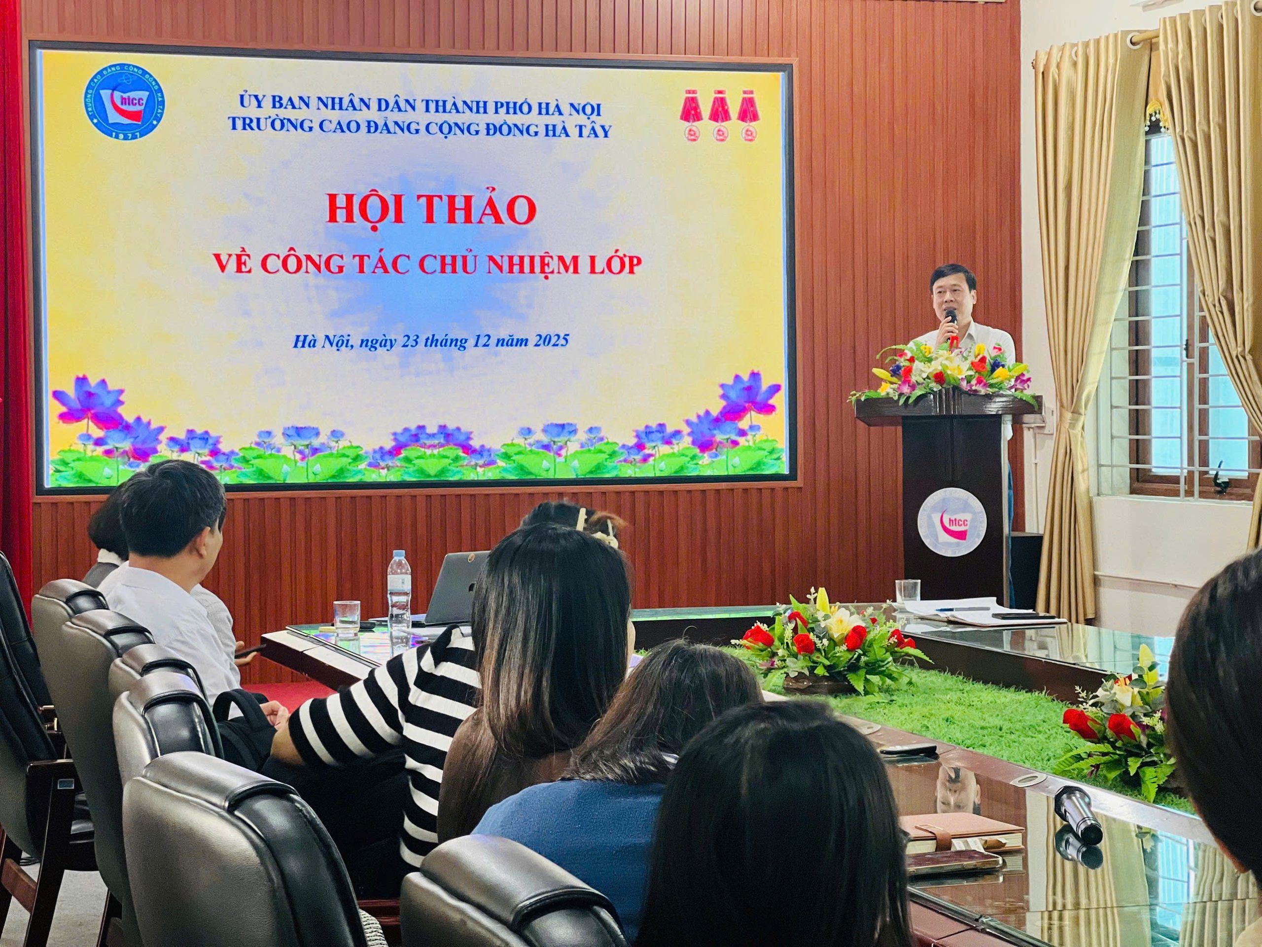 Thực hiện kế hoạch số 157/KH-CĐCĐHT về Công tác chủ nhiệm lớp, ngày 23/12/2025, tạị Hội trường HB, Trường Cao đẳng Cộng đồng Hà Tây đã long trọng tổ chức Hội thảo về công tác chủ nhiệm lớp.