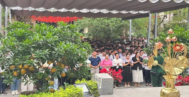 Thầy và trò dâng hương tại khu tưởng niệm liệt sỹ bảo tàng đường mòn Hồ Chí Minh